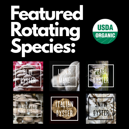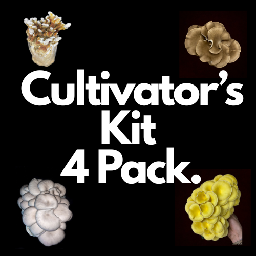 🍄 Four ready-to-fruit cultivator kits — featuring rotating gourmet varieties like Lion’s Mane, Blue Oyster, Pearl Oyster, and Black King Oyster.